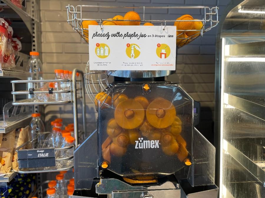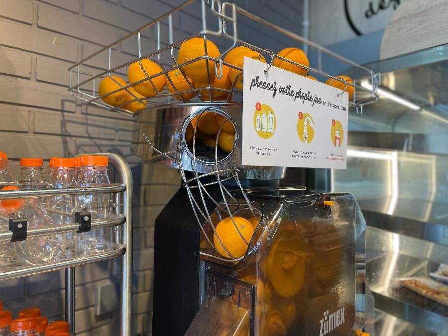 Succombez à l'intensité d'oranges minutieusement pressées, chaque verre reflétant l'essence de la fraîcheur. Et pour votre confort ? Un contenant vous attend.